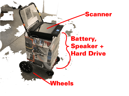 2. We send the Scanning Cart out into the Square. Whomever has the cart scans what they want.